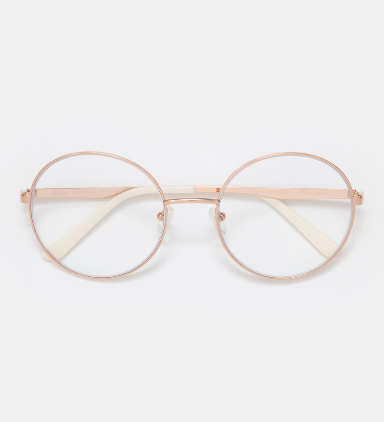 Grace Rose Gold Large Blue Light-brillene har en slående roségullinnfatning med en større silhuett, designet for å filtrere skadelig blått lys fra digitale skjermer. Disse elegante og lette brillene reduserer belastningen på øynene ved langvarig skjermbruk, samtidig som de fremhever din sofistikerte stil, noe som gjør dem til den perfekte blandingen av beskyttelse og raffinert mote.